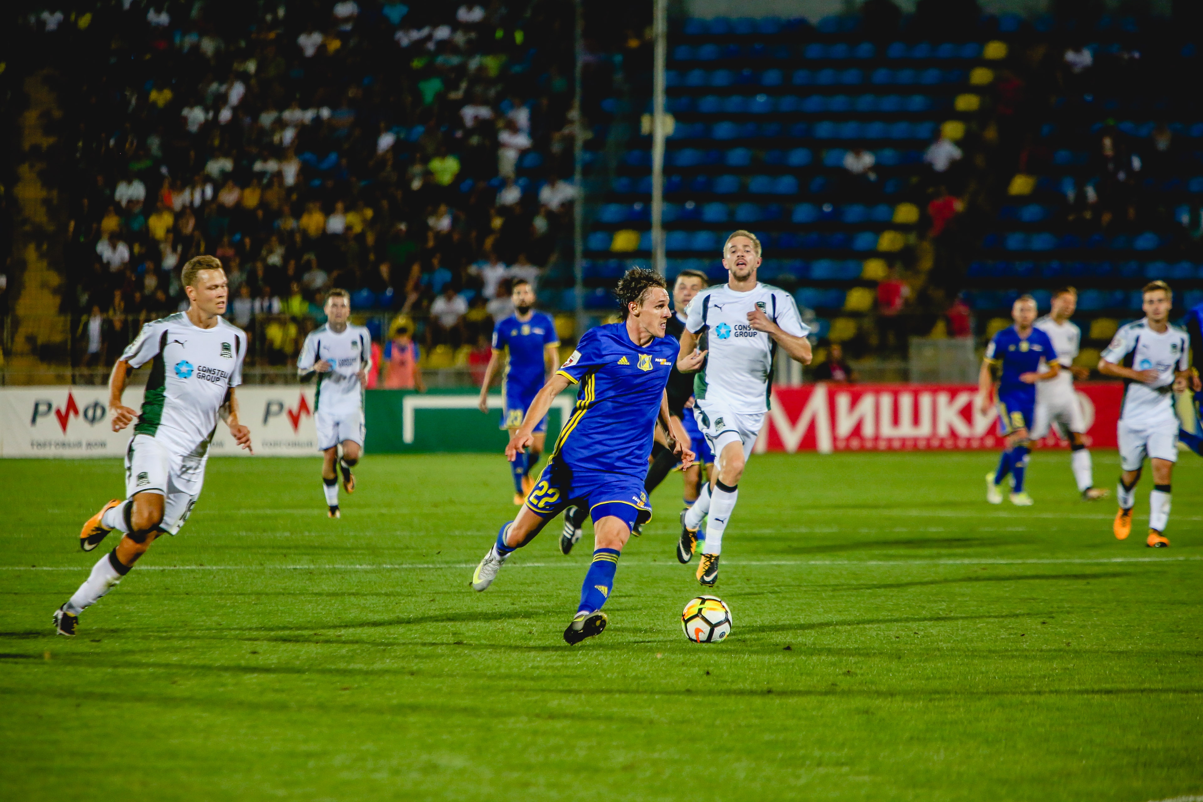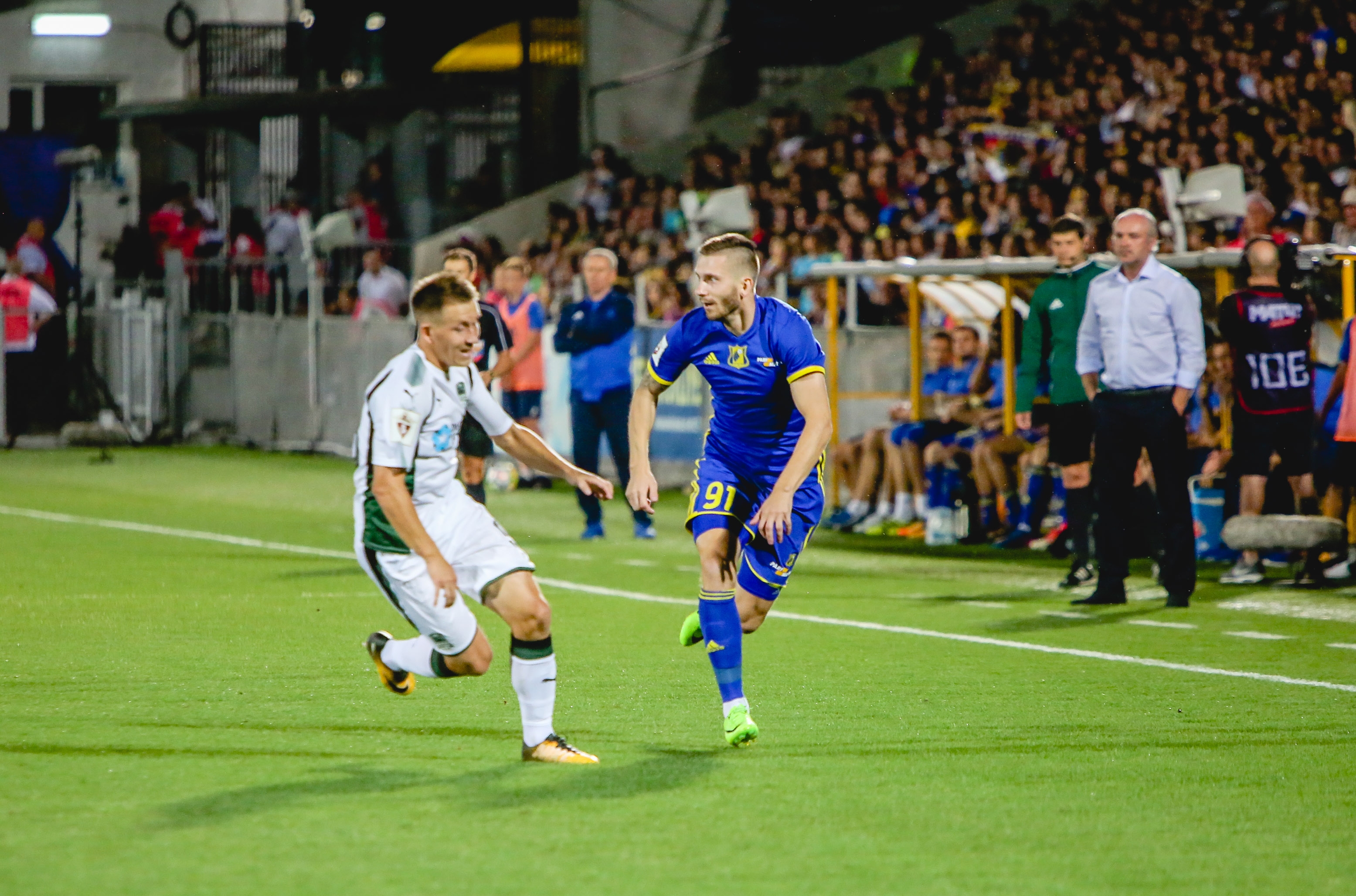 Защитник «желто-синих» Виталий Устинов от матча к матчу смотрится все лучше. Сегодня он запомнился парой отличных включений в атаку и цепкой игрой у своей штрафной.