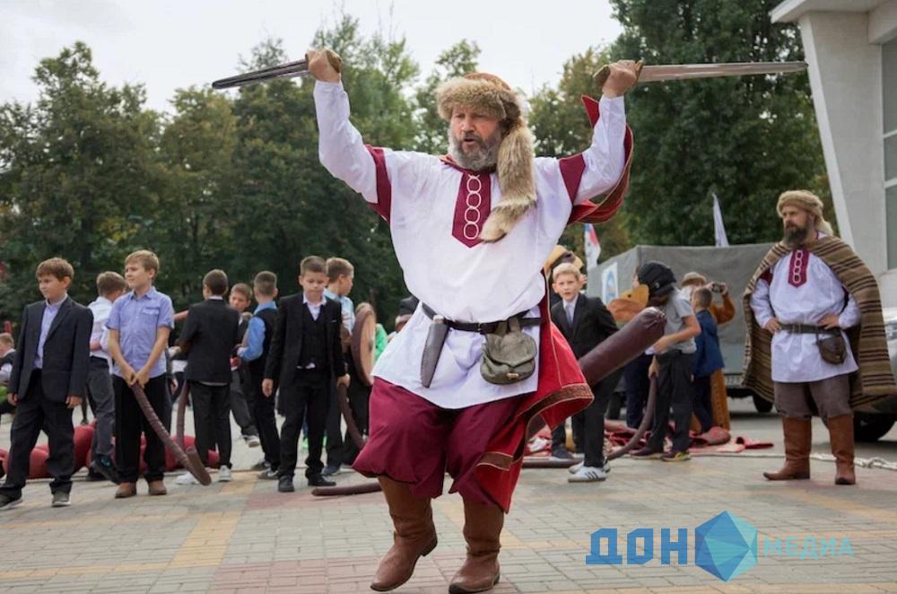 В Азове участники автопробега в костюмах богатырей провели программу с конкурсами и играми. Участники соревнований смогли примерить старинные доспехи, пострелять из лука, пометать в мишени ножи, топорцы и сулицы.