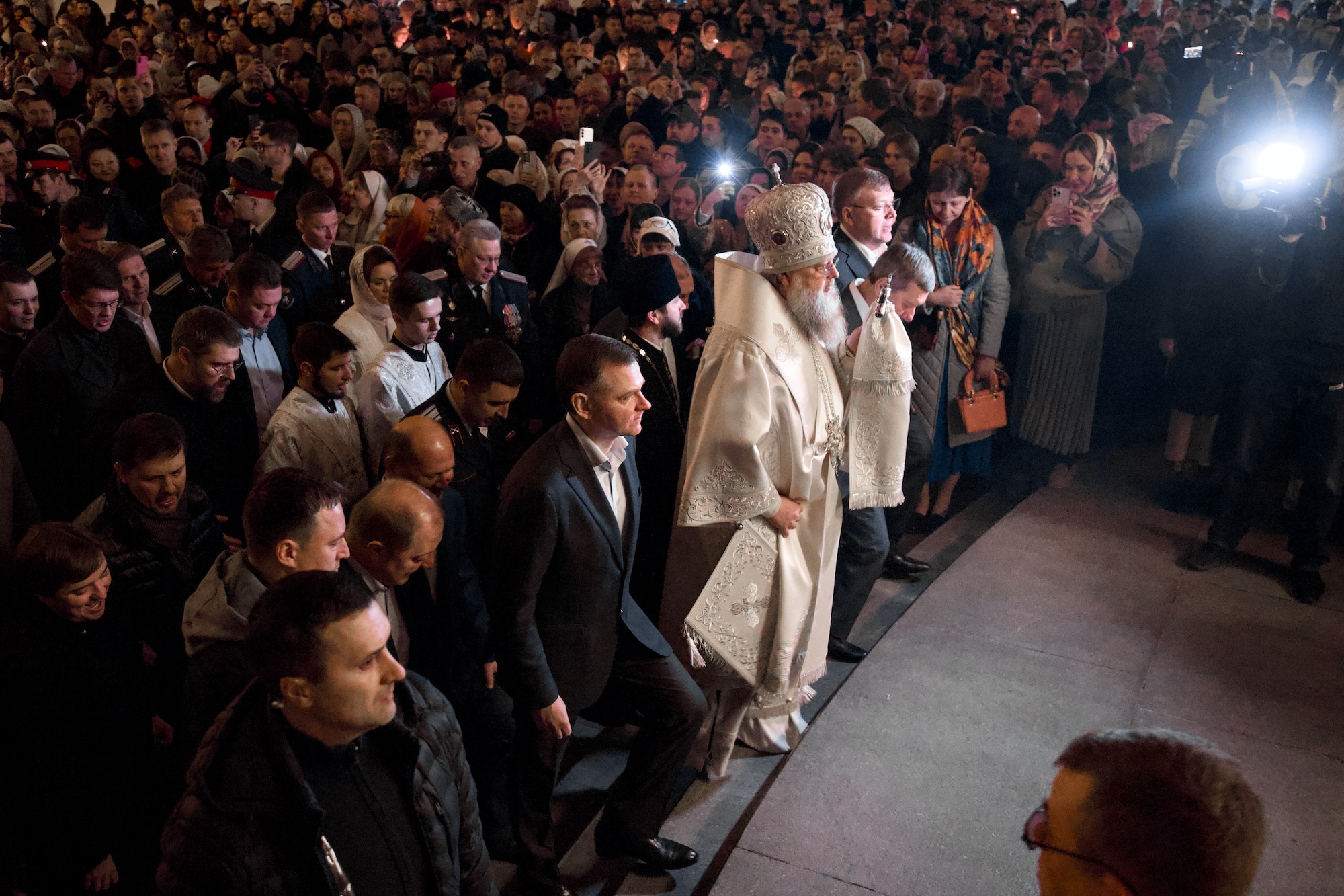 Ростовская область, 12 апреля 2026, DON24.RU. Ночная пасхальная литургия в Ростовском кафедральном соборе состоялась в ночь с 11 на 12 апреля. На богослужение пришли сотни ростовчан и гостей региона, представители старшего поколения и молодежь.