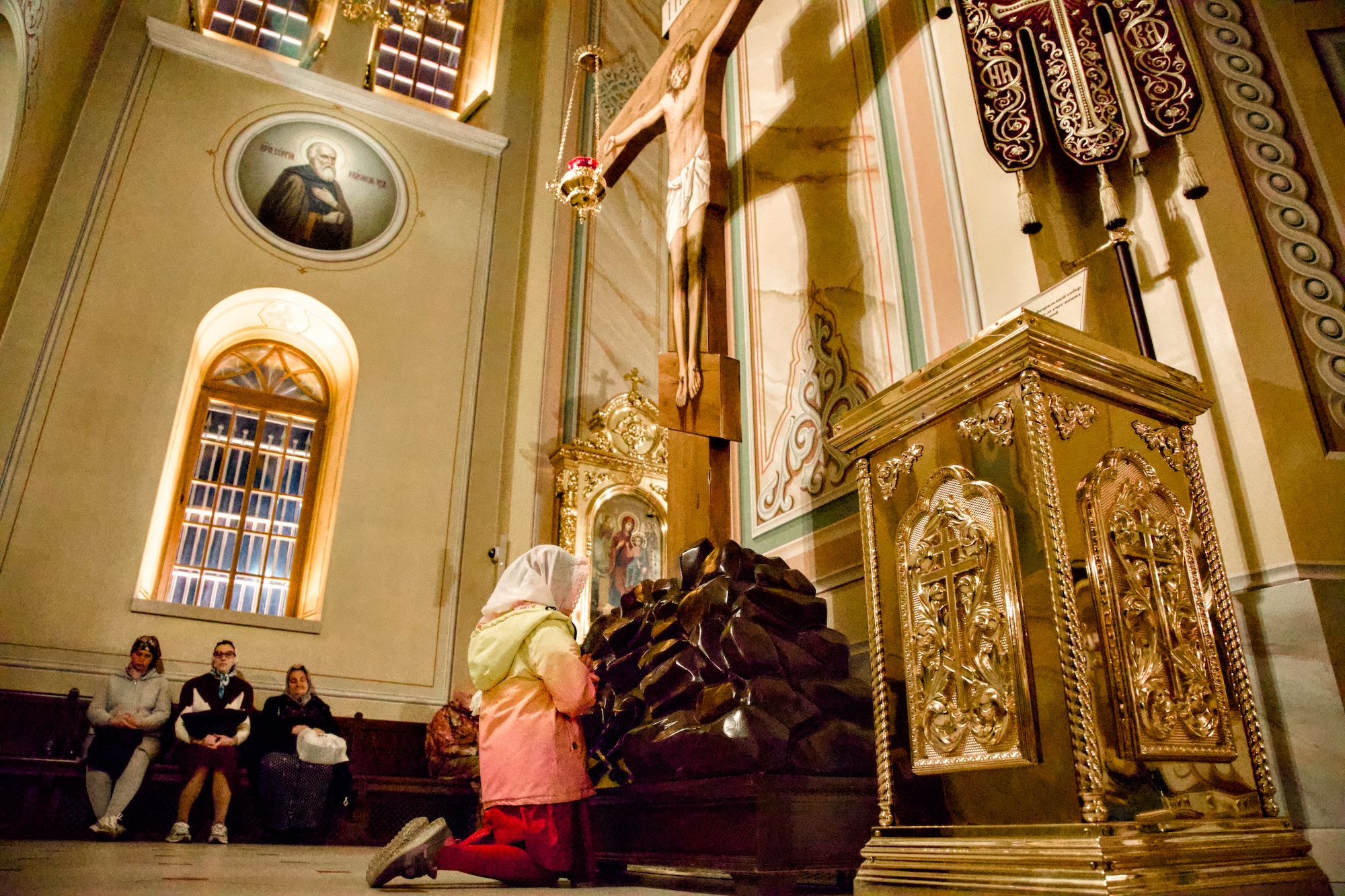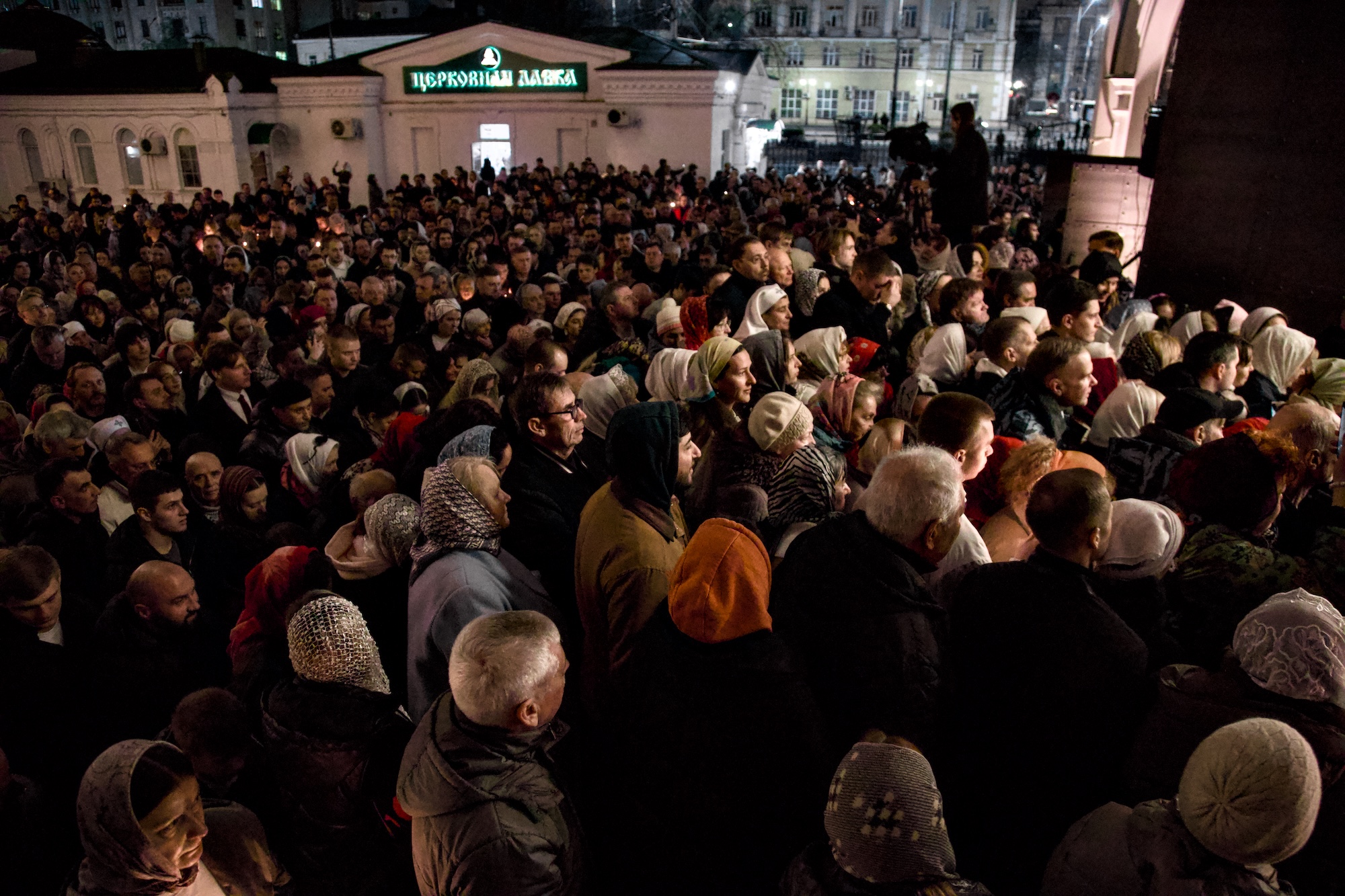 Самая торжественная минута наступает, когда шествие останавливается у закрытых дверей храма и все с радостью поют «Христос Воскресе».