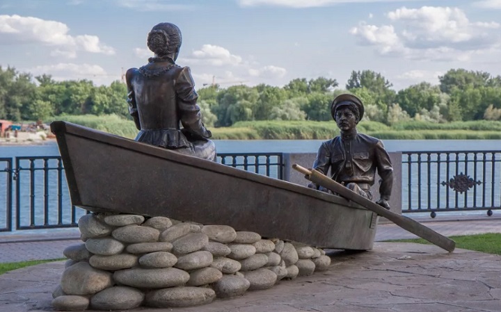 Фото: drive2.com Памятник Григорию и Аксинье на набережной Дона в Ростове