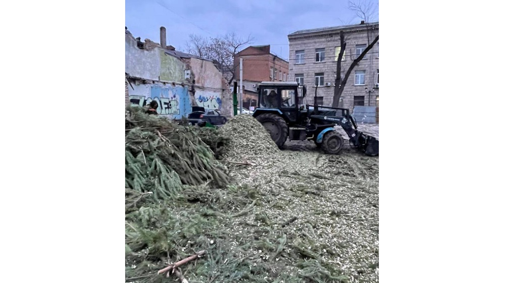 Новогодние деревья превратили в опилки и щепу, которые будут использоваться для утепления растений при благоустройстве города и для подсыпки в вольерах животных. Также сырье пойдет на хознужды на объектах регоператора.