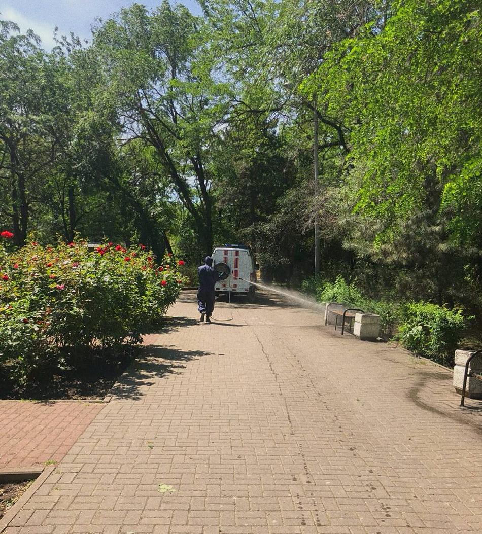 Ежедневно обрабатывается сразу по нескольку районов города. На сегодняшний день продезинфицировано почти 4 млн кв. м.