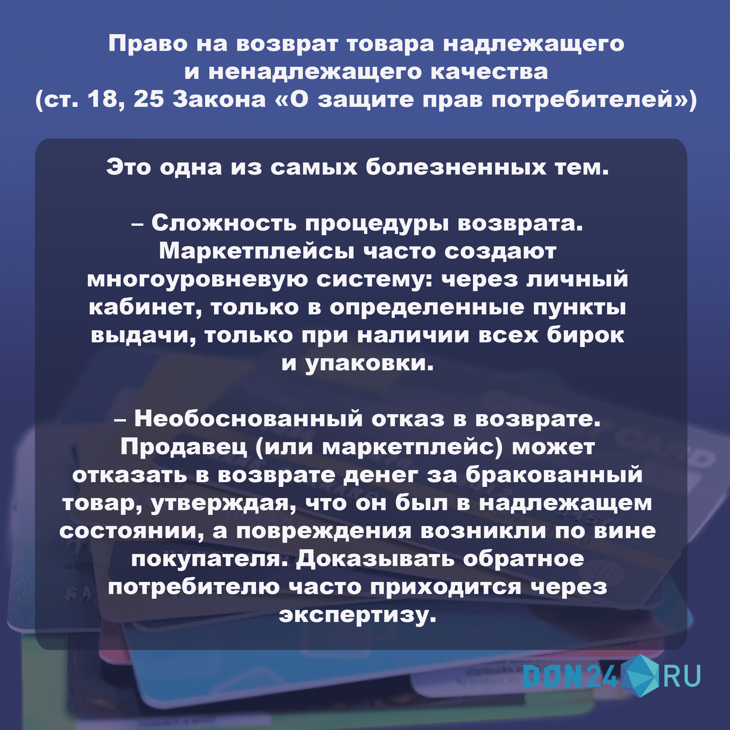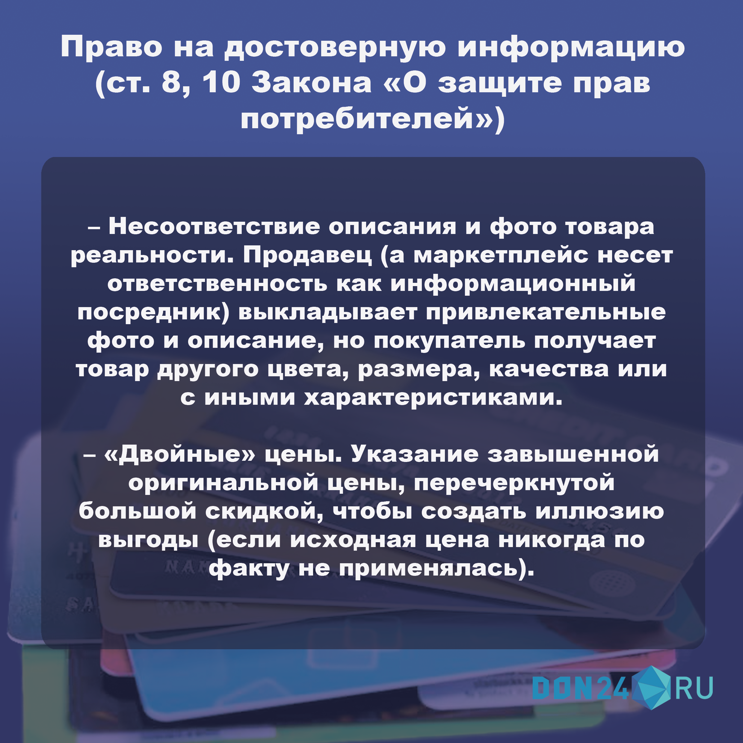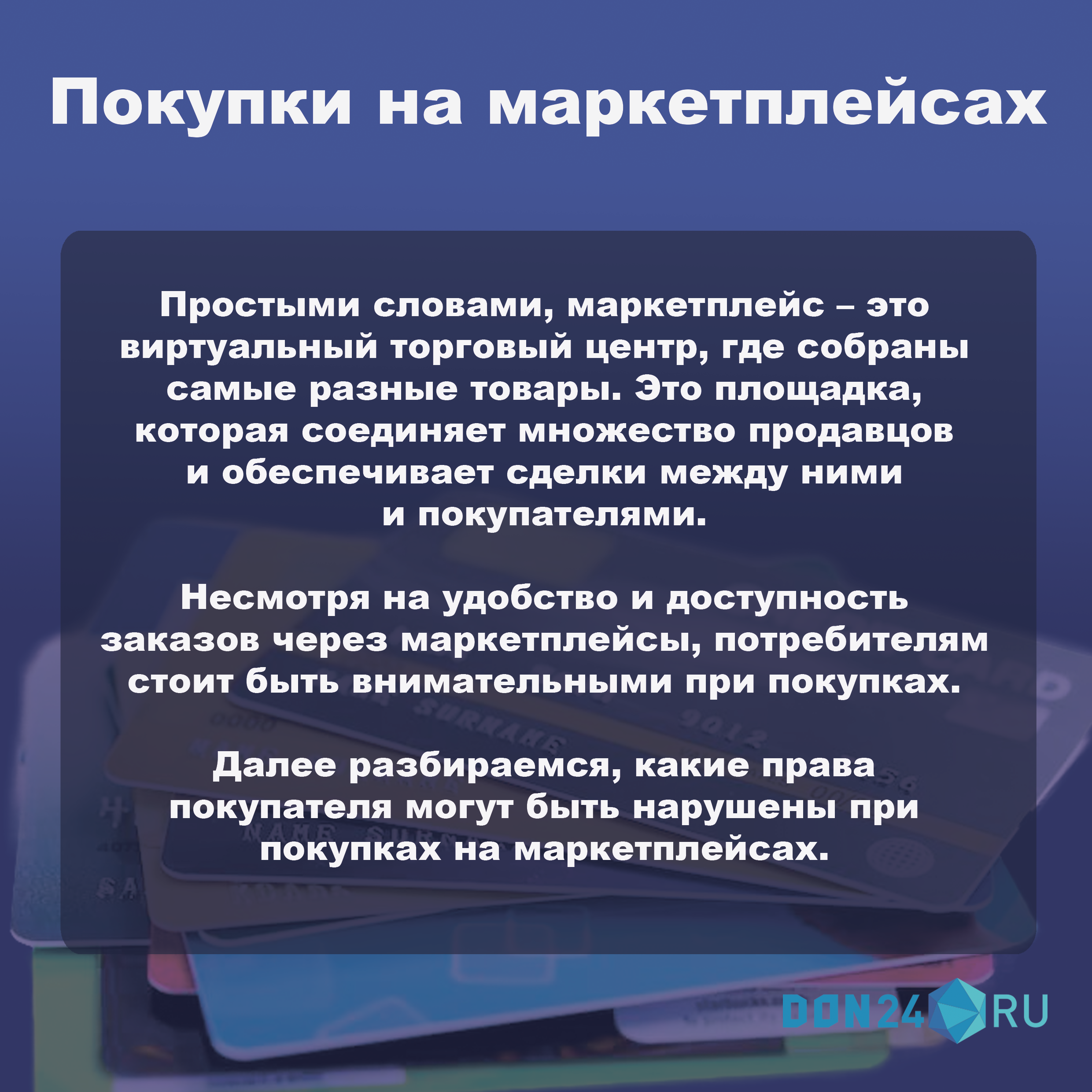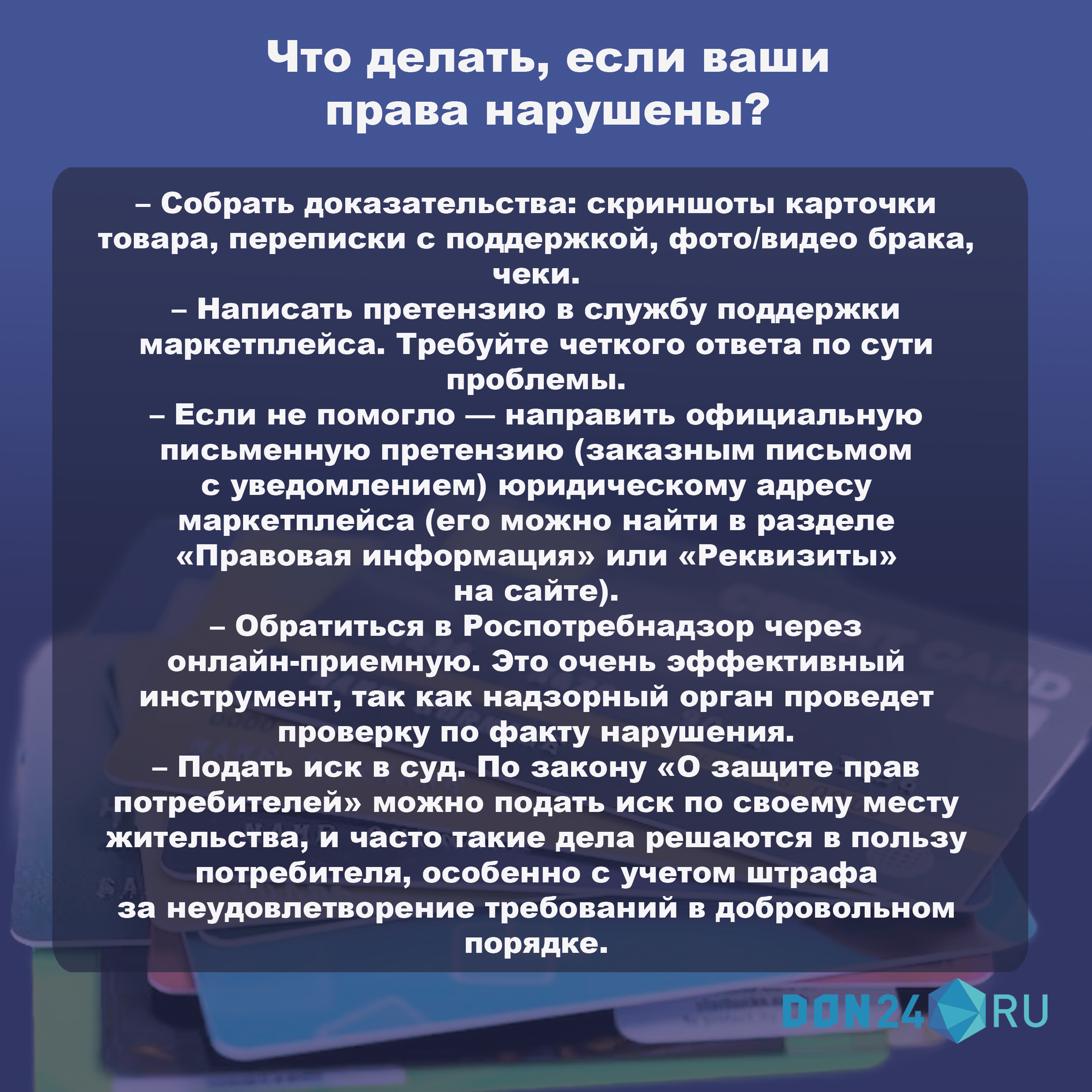 В карточках разбираемся, как не дать нарушать свои права при покупке на маркетплейсе.