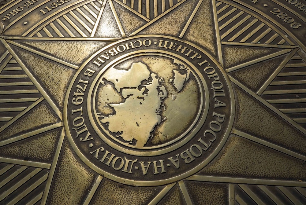 На круге указано расстояние до некоторых других точек земного шара. К примеру, разглядывающие знак граждане узнают: от донской столицы до Антарктиды почти 15 тысяч км, а до Москвы — 960 км, до Мехико более 11 тысяч км, а до Пекина — свыше 6000 км.