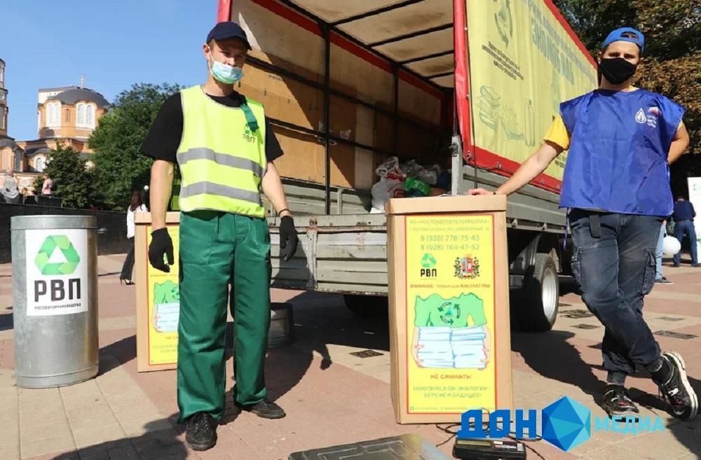 Ростовская область, 25 августа 2021. DON24.RU. Марафон «Дни зеленых действий» прошел сегодня в Ростове. На улице Пушкинской, неподалеку от Донской публичной библиотеки, у горожан принимали макулатуру, батарейки и пластик. Поучаствовали в экоакции и депутаты Законодательного Собрания Ростовской области.