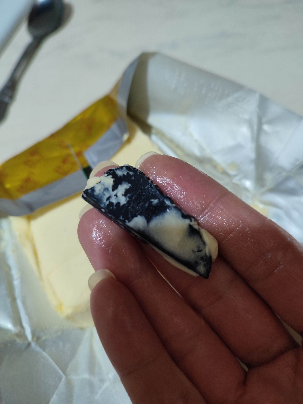 Ростовская область, 31 октября 2022. DON24.RU. В одном из магазинов Азова местная жительница купила сливочное мало, но оно оказалось с неприятным сюрпризом. В молочном продукте она нашла кусок ножа.