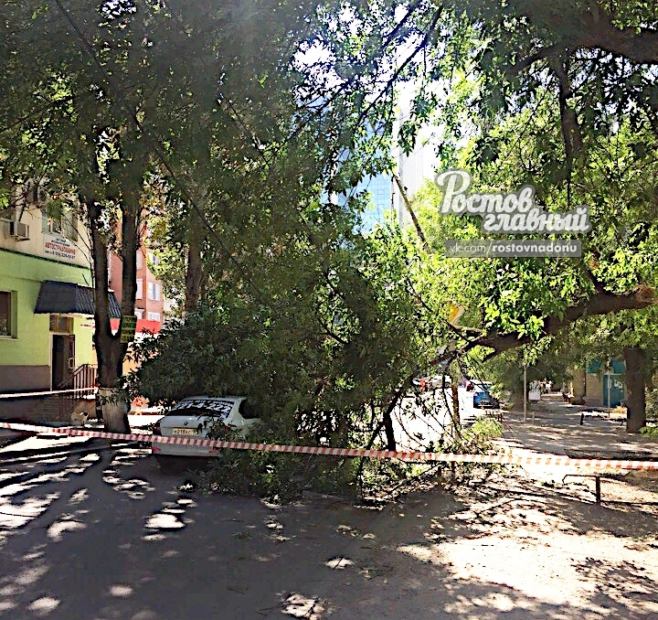 Ростов-на-Дону, 25 августа 2018. DON24.RU. Дерево упало на машину в центре Ростова. Об этом сообщил очевидец в паблике «Ростов Главный».