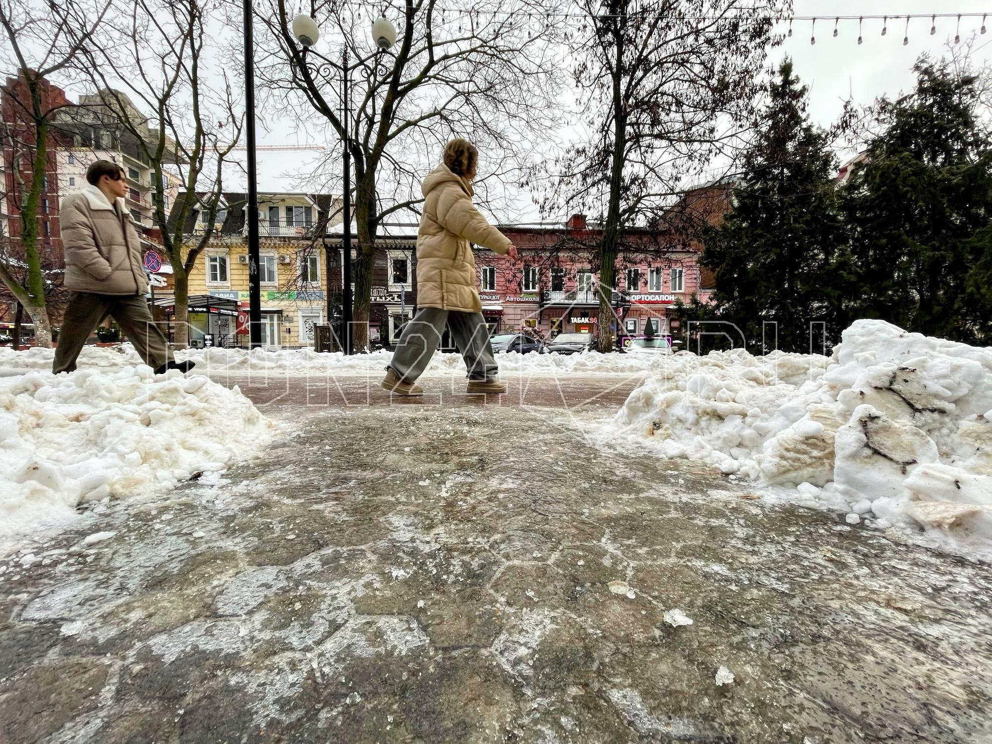 Ростовская область, 8 февраля 2026, DON24.RU. Центральные улицы Ростова-на-Дону – Большая Садовая и Пушкинская – оказались покрыты сплошной наледью. По словам очевидцев, тротуары не обработаны противогололедными средствами, из-за чего передвигаться по городу небезопасно.