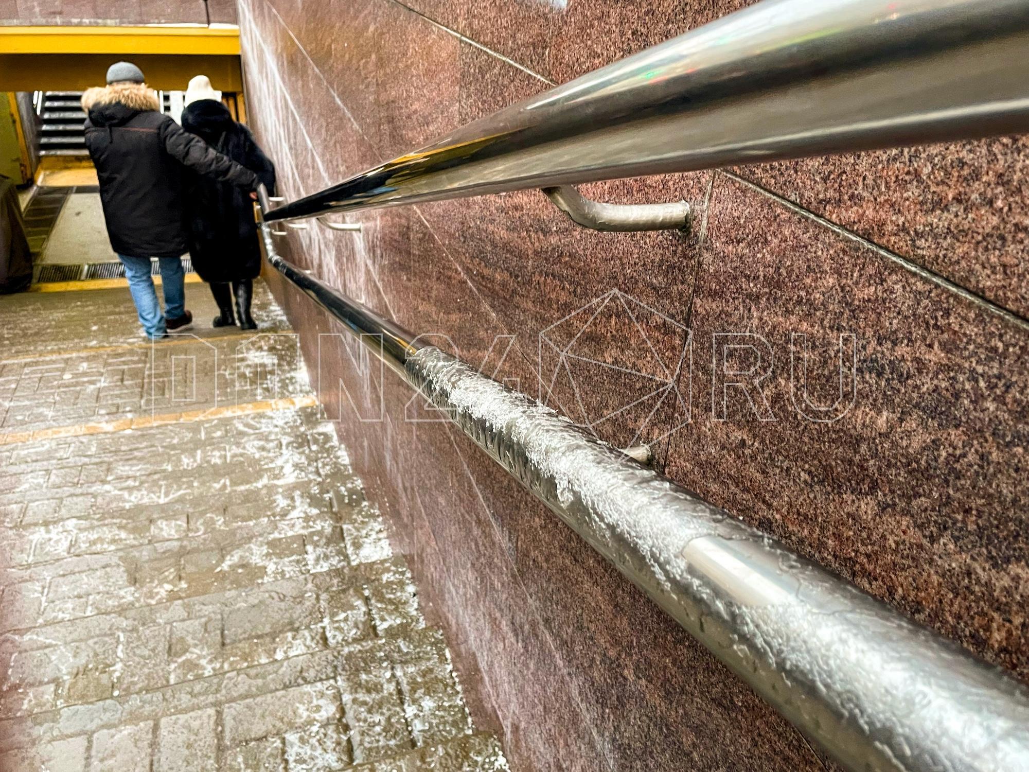 Особо опасная ситуация сложилась в подземных переходах. Лед покрывает не только ступени, но и поручни. Подъем и спуск по таким лестницам требуют повышенной осторожности – поверхность скользкая и не посыпана песком.