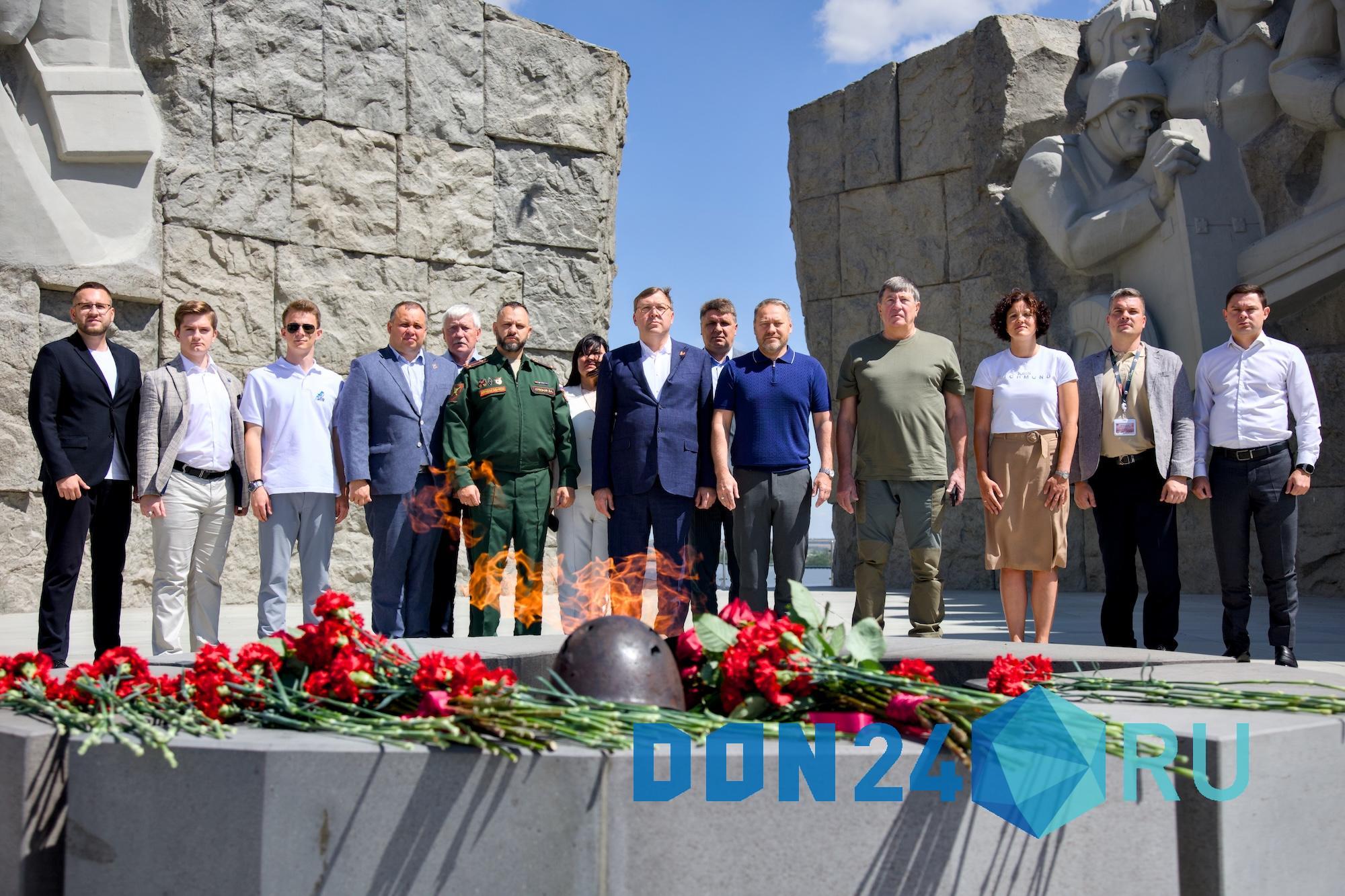 Гости и участники молодежного форума возложили цветы к мемориальному комплексу «Героям Прорыва Миус-фронта и освобождения города Таганрога» и к памятнику «Советскому солдату-победителю».