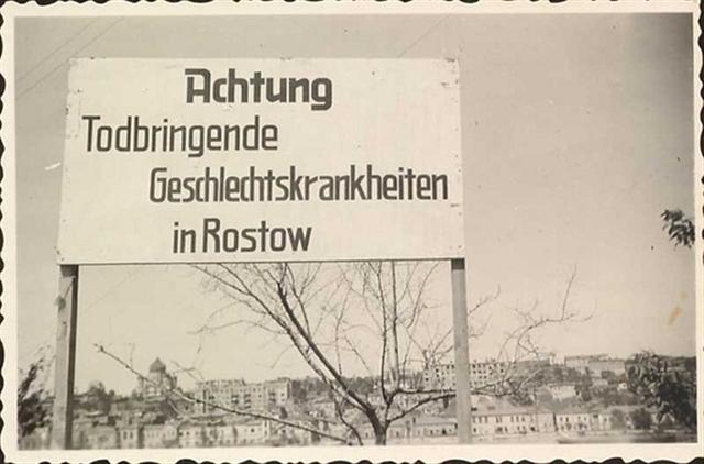 Но было еще кое-что, о чем оккупанты стыдливо умалчивали. Массовый характер в рядах тевтонских завоевателей приобрели венерические заболевания. Прошедшие с разбоем по всей Европе фрицы и гансы насиловали женщин в захваченных городах и деревнях. Не случайно на въезде в Ростов немецкая медслужба установила грозную надпись: «Внимание! В Ростове смертоносные венерические заболевания».