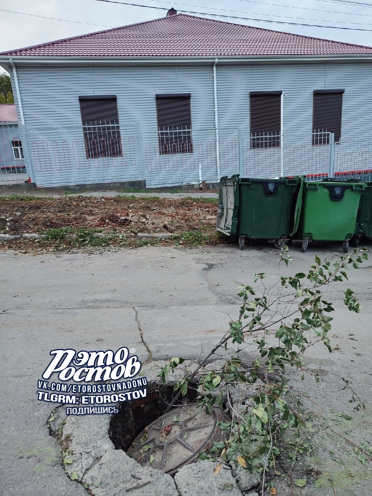 Ростовская область, 28 сентября 2022. DON24.RU. Асфальт вместе с крышкой канализационного люка провалился под землю прямо на проезжей части в Ростове. Инцидент случился на пересечении переулка Безымянного и улицы Собино, сообщают в Сети очевидцы. Участок ничем не огорожен.