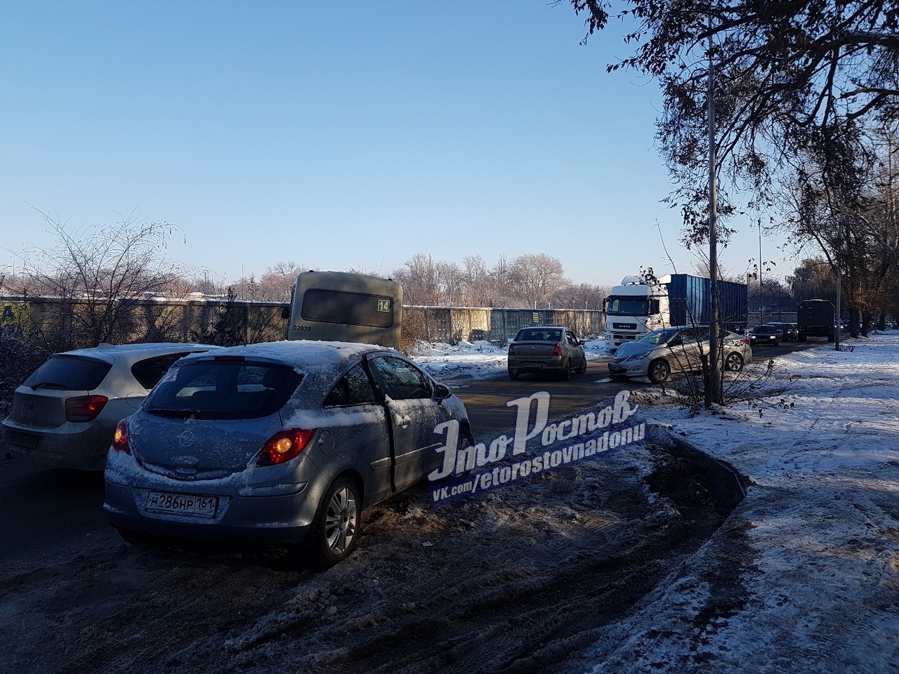 Ростов-на-Дону, 21 ноября 2018. DON24.RU. Тройное ДТП произошло сегодня утром в Ростове. Как пишут в соцсетях очевидцы, около 09:30 утра в Октябрьском районе города на улице Тимошенко столкнулись маршрутка, грузовик и легковушка.