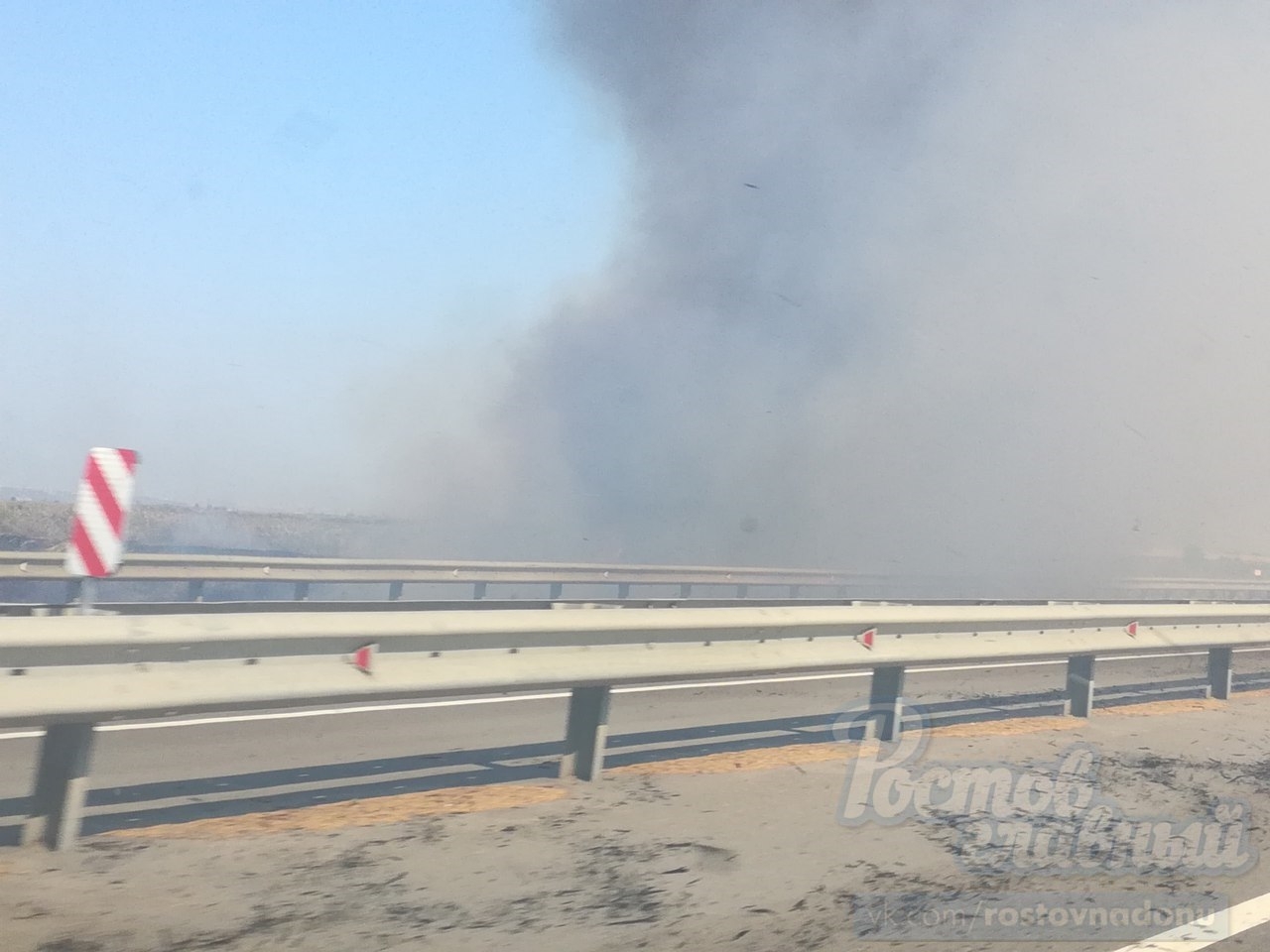 Ростов-на-Дону, 30 сентября 2017. DON24.RU. Под Ростовом горит сухая трава вблизи трассы «Ростов-Азов». В социальных сетях появляются фотографии и видео возгорания. На кадрах видно, что густой дым несет прямо на дорогу.