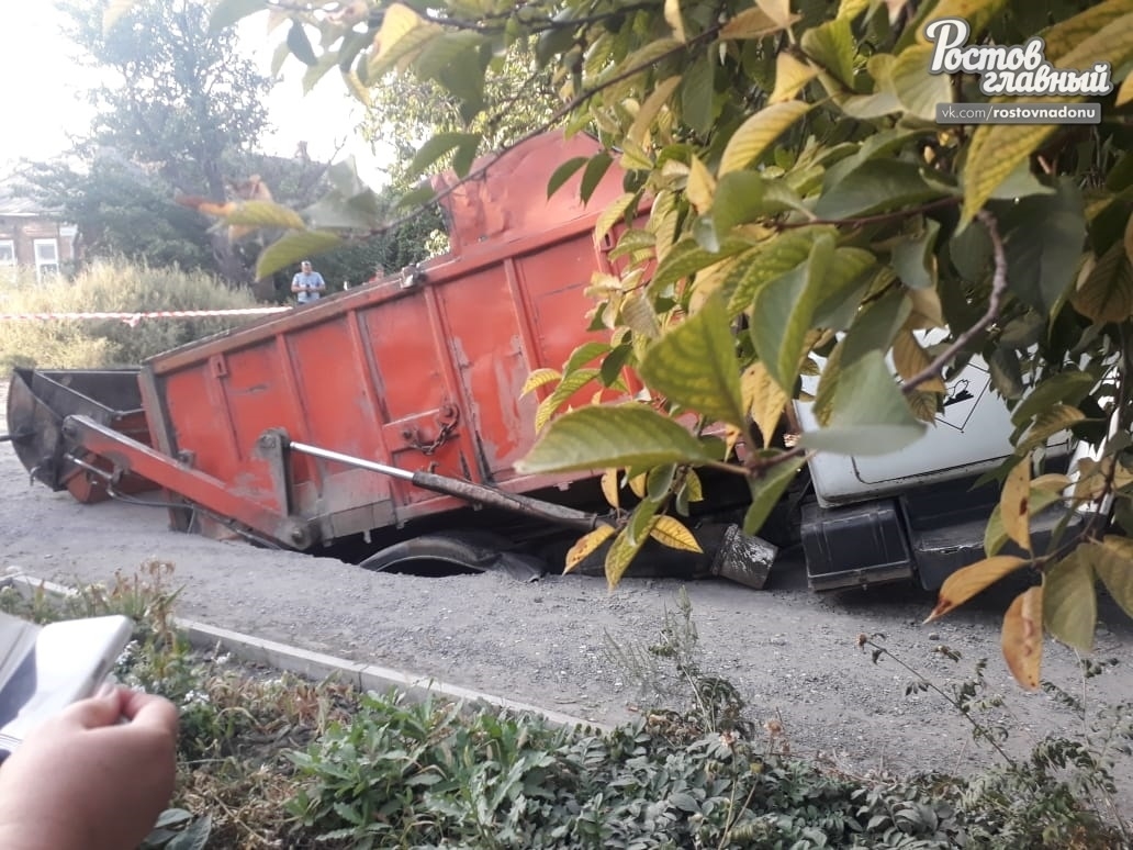 Таганрог верен себе: мусоровоз провалился в огромную яму посреди дороги