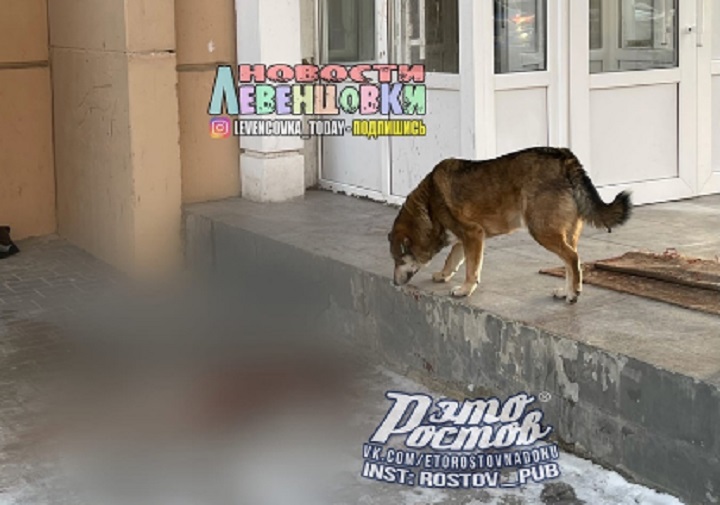 Около шести вечера очевидцы сообщили, что последствия происшествия до конца еще не убрали и к подъезду начали приходить бездомные собаки.