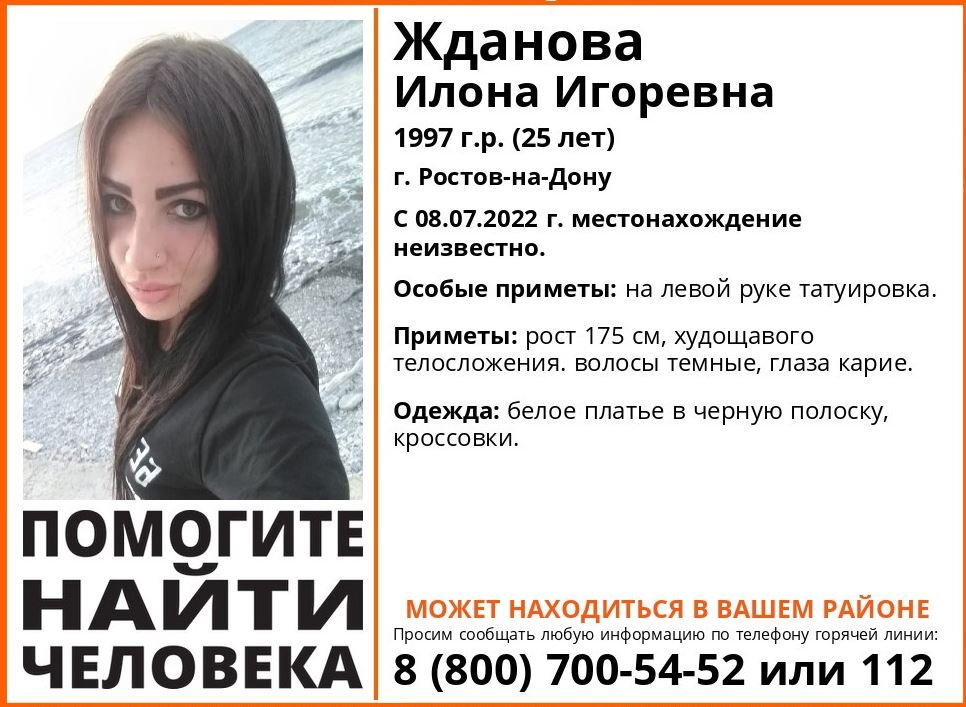 Ростовская область, 20 июля 2022. DON24.RU. В Ростове волонтеры разыскивают без вести пропавшую 25-летнюю Илону Жданову. Как сообщили в поисковом объединении «Лиза Алерт Юг», уже почти две недели о ее местонахождении ничего не известно. Девушка не выходит на связь с 8 июля.