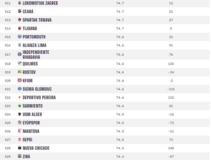 Лучшей командой с Дона, как и следовало ожидать, оказался ФК «Ростов». Западные аналитики расположили его на 519-м месте среди сильнейших команд мира.
