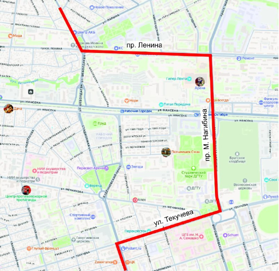 «Движение временно организовано по схеме: пл. Народного Ополчения – пр. Ленина – пр. Михаила Нагибина– ул. Текучева – пр. Буденновский», – пишет источник.