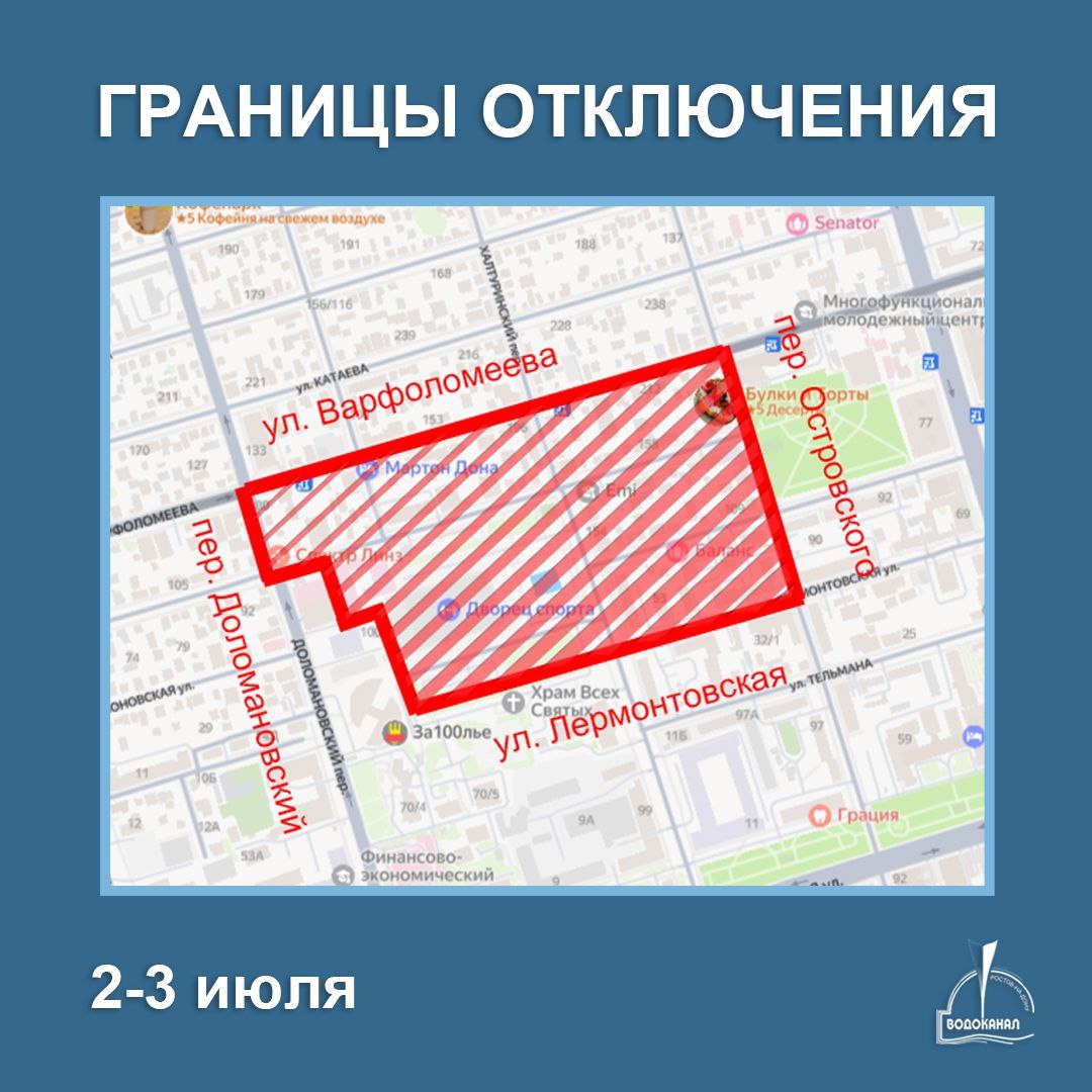 Без холодной воды останутся жители улицы Варфоломеева, переулка Островского, улицы Лермонтовской и переулка Доломановского. Ограничения также коснутся КДЦ «Здоровье».