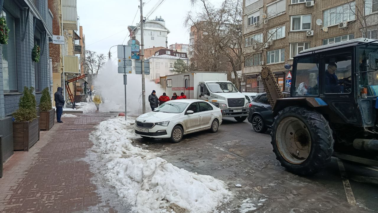 По словам очевидцев, паром окутана вся улица. На месте также работает аварийная бригада ростовских тепловых сетей.